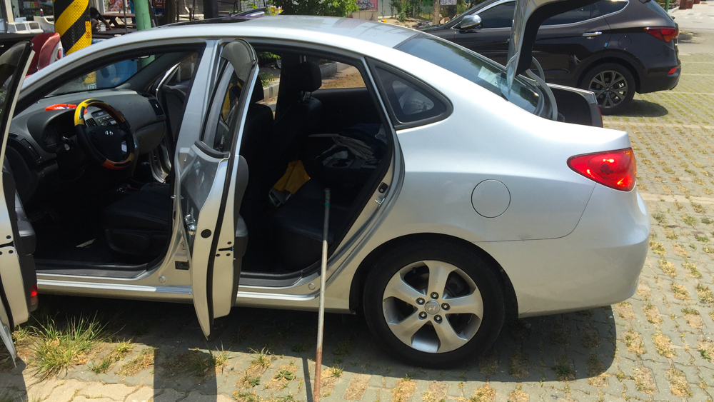 보험사를 불러서 문을 열어 달라고 했더니, 차문은 열어줄 수 있지만 트렁크는 열어줄 수 없다더군요. 문을 열고서 트렁크 레버를 당겼는데, 트렁크가 안 열립니다!! 상황에 따라서 그런 경우가 있다더군요. 그럴 땐 보험사가 아니라 자동차 A/S를 불러야 한다고 해서 현대자동차에 신고를 해두고는, 다른 방법으로 열 수 없을까 고민하다가 뒷좌석에서 트렁크로 이어지는 작은 공간을 열어서 근처 공사장에 있던 기다란 쇠막대기를 넣어 트렁크 안쪽에서 열리는 버튼을 눌렀습니다. 철컥! 하면서 트렁크가 열릴 때 얼마나 기뻤던지.