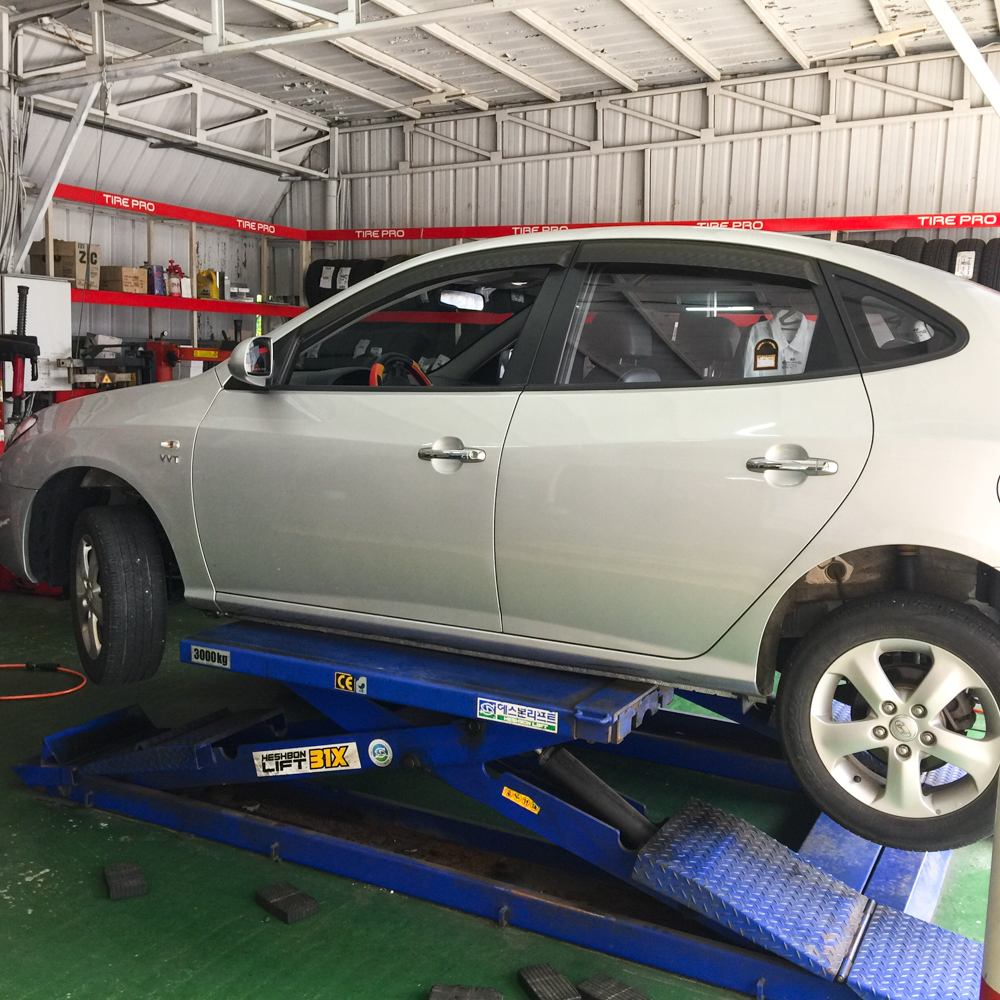 제주 자연사 박물관에 주차를 하고 돌아서는데 뭔가 쌔~ 한 느낌이 들어서 차를 빙 돌면서 확인해보니... 타이어 하나가 푹 주저앉아있는 겁니다. 보험사에 전화를 하니 금방 출동해서 타이어를 확인해주시더군요. 나사못이 하나 박혀서 공기가 빠지고 있다면서 '지렁이'를 하나 박아주셨습니다. 그러고는 다른 타이어들도 공기압 검사를 해주셨는데, 아무래도 앞쪽 바퀴 하나도 수상하다고 하시는 겁니다. 그래서 그것도 마저 수리해주십사 했더니 그러면 보험사 무료 출동 서비스 기회를 두 번(타이어 하나에 한 번씩) 사용하게 되는 거라고 하시면서 아직 공기압이 많이 빠지지 않았으니 근처 타이어 수리점을 찾아가 보시는 게 더 나을 거라고 알려주셨습니다.
