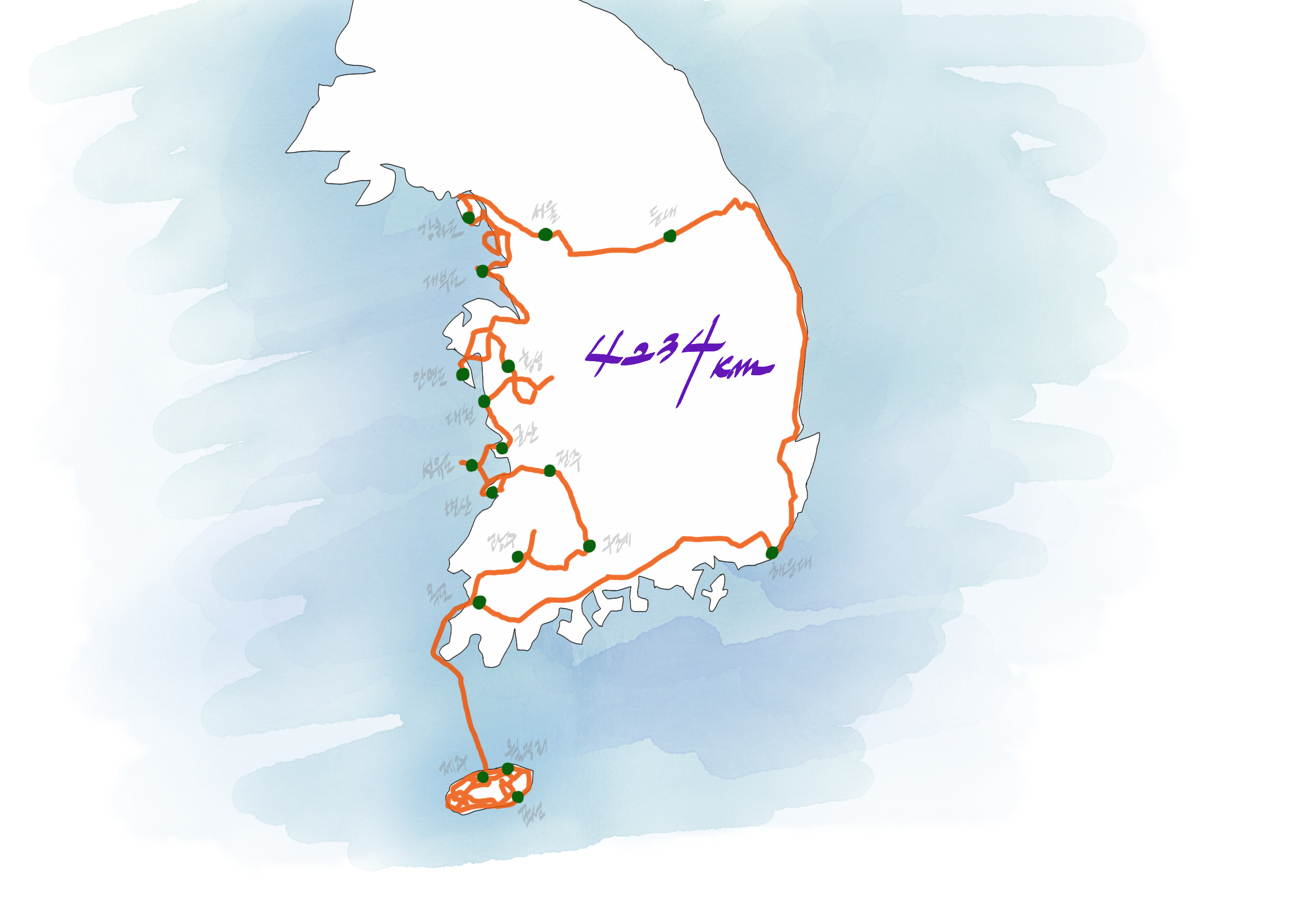 아마 서해를 따라 내려갔던 속도로 남해와 동해 방면을 계속 여행했다면 총 여행 기간은 두 달을 훌쩍 넘겼을지도 모르겠습니다.