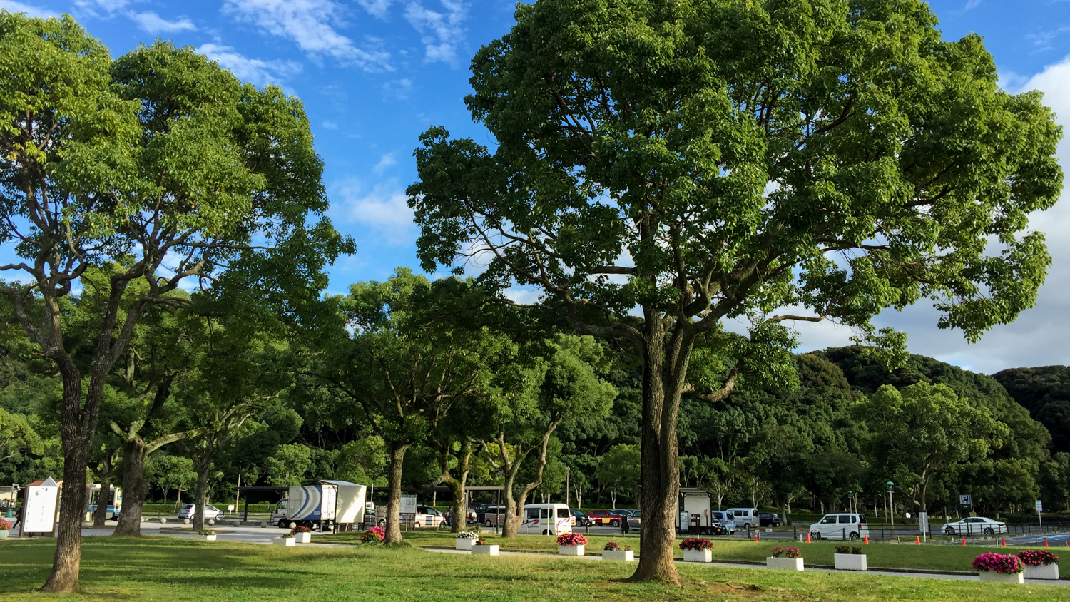 끝자락에는 해바라기들도 모여있어서 산책하기에 지루하지 않은, 작은 공원. 덴카이호 전망대는 단지 쿠쥬쿠지마만을 보러 오는 곳은 아니었다. 기분이 한껏 좋아져서 주차장 구석에 있는 매점에서 점심을 해결할까 하는 생각이 들었다.