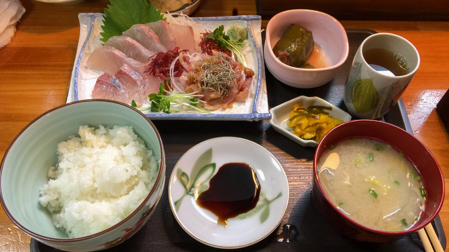 숙소에 돌아와서는 근처에 저녁을 먹으러 나갔다. 호텔 로비에서 식당 소개를 부탁드렸더니 내가 검색해서 찾아본 곳 중 한 곳을 소개해준다. 이자카야 나가타(居酒屋ながた). 메뉴판에 '정식'이 보이길래 사시미 정식을 주문했다. 가격은 900엔. 식사가 너무 마음에 들어서 니혼슈와 소츄를 한 잔씩 더 마셨다.