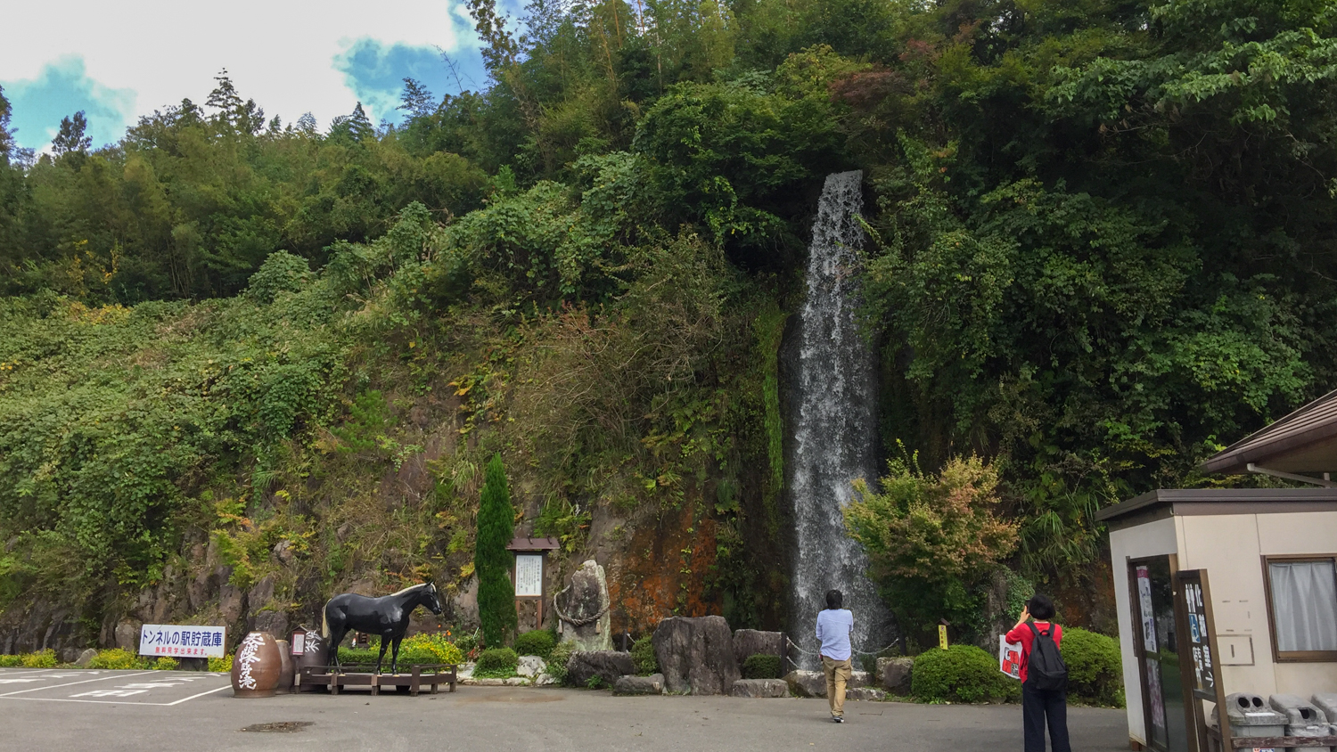 아소산 로프웨이에서 타카치호 협곡까지는 의외로 시간이 오래 걸리는 거리였다. 운전에 지쳐갈 때 즈음 폭포가 하나 보이고 건물이 보이고, 주차장이 보이길래 휴게소인가? 하고 급하게 핸들을 꺾어서 들어왔다. 이름도 없을 것 같은 이 곳의 이름은 터널 역(トンネル の駅). 이름이 특이하길래 유래를 좀 찾아보니...